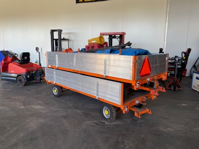 2 aanhangers met volgsysteem Verlichting aan beide kanten. Trekhaak is aan beide kanten te monteren. Aluminium zijschotten Afdekzeilen
