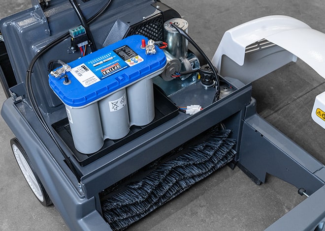 De Dulevo 700 is de kleinste achterloop‑veegmachine binnen het Dulevo‑assortiment, maar laat zich absoluut niet kennen. Dankzij de compacte bouw en een wielbasis van slechts 71 cm is de machine enorm wendbaar, zelfs in smalle gangpaden. De zijborstel veegt moeiteloos langs muren, pallets en stellingen, terwijl de hoofdborstel het vuil direct transporteert naar de 40‑liter vuilvergaarbak. De Dulevo 700 presteert uitstekend in zowel lichte als zware omgevingen, zoals magazijnen, werkplaatsen, agrarische bedrijven, parkeergarages en benzinestations.