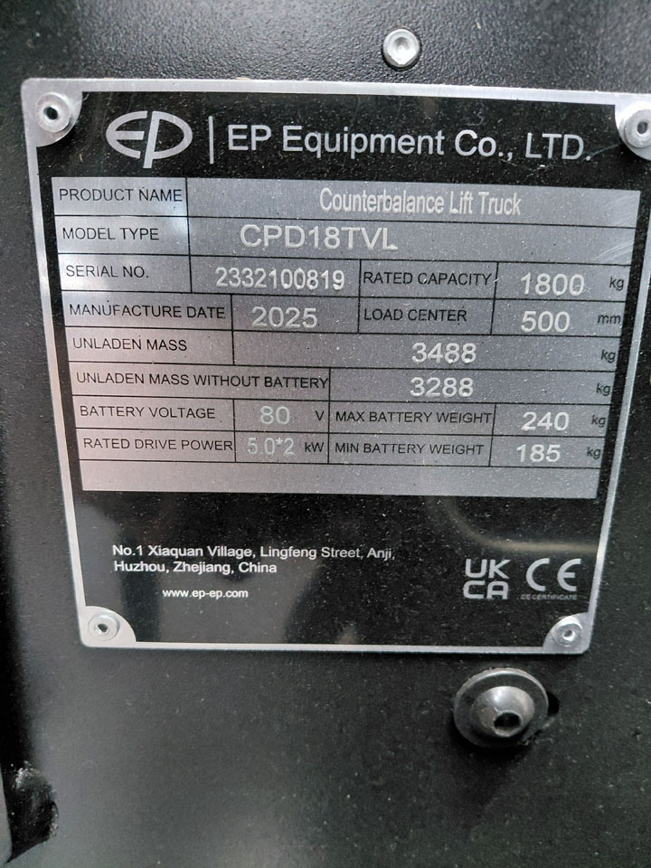 EP CPD18TVL – Compacte 1.800 kg Lithium‑Ion Elektrische Heftruck met High‑Performance 80V Aandrijving