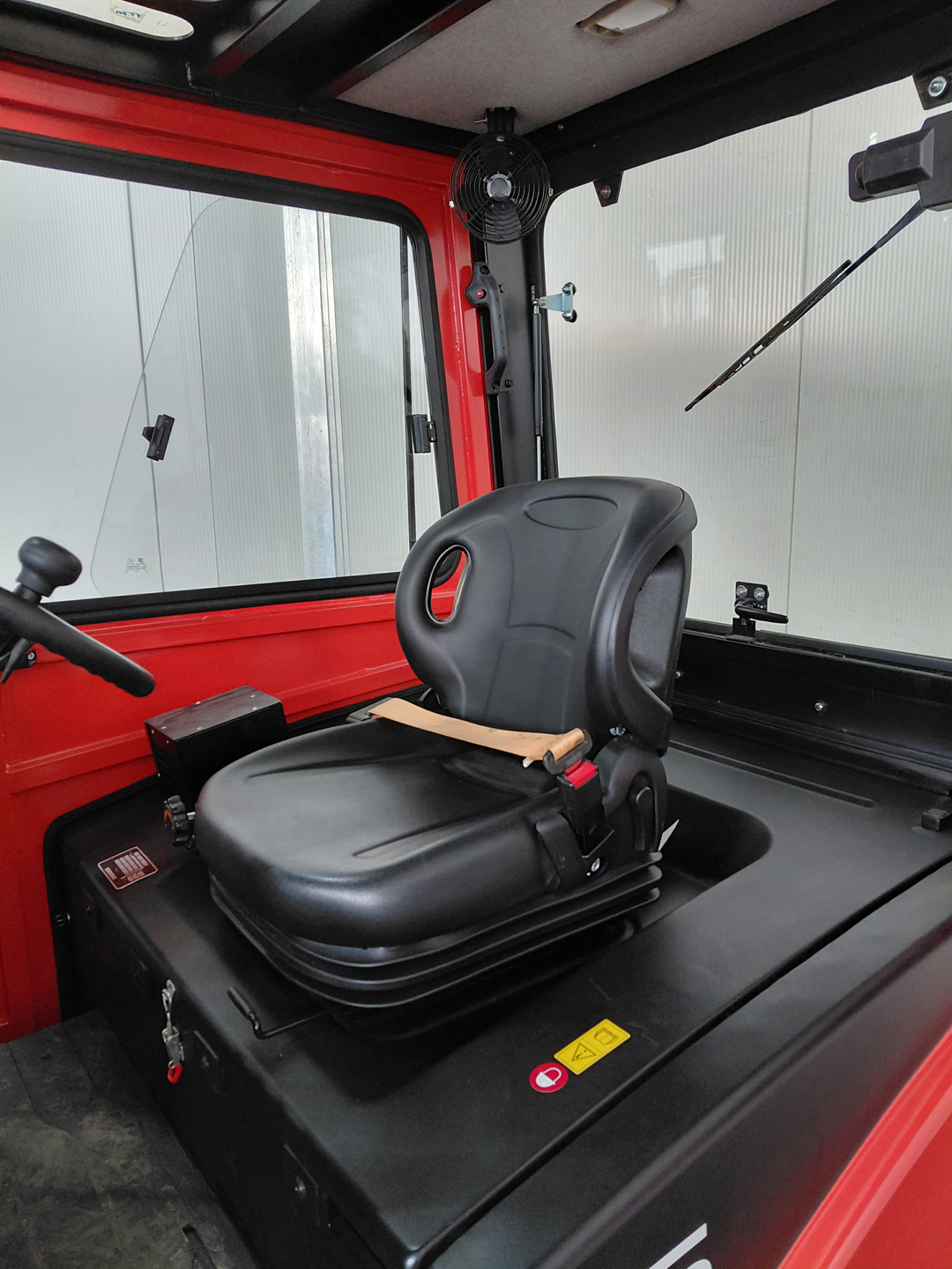 De CPD45F8 elektrische heftruck biedt een ergonomisch ingerichte cabine met royale beenruimte en een lage instaphoogte, wat het instappen vergemakkelijkt. De verstelbare stoel en intuïtieve bediening verhogen het gebruikscomfort, waardoor bestuurders minder snel vermoeid raken en veiliger kunnen werken.