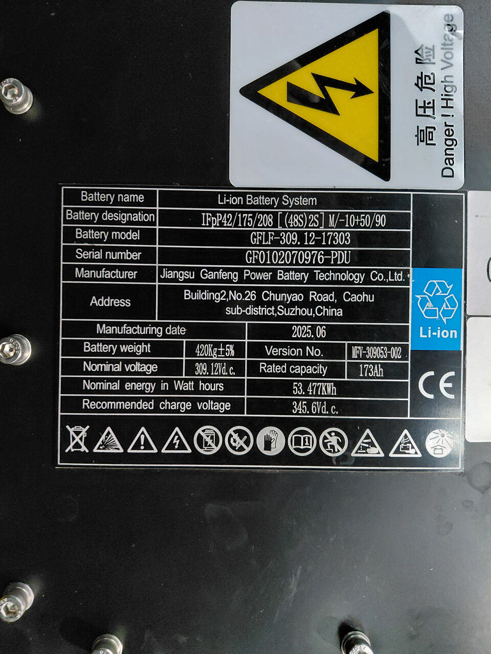 Het hart van de EFL553‑HV‑6 High-Voltage elektrische heftruck wordt gevormd door een 309V / 173Ah LFP high-voltage Li‑Ion batterij, die niet alleen hogere spanning levert dan traditionele elektrische heftrucks, maar ook zorgt voor een aanzienlijke prestatieverbetering. Deze high‑voltage configuratie biedt een langere werktijd, hogere energie-efficiëntie en een betere warmtehuishouding dan low‑voltage systemen.