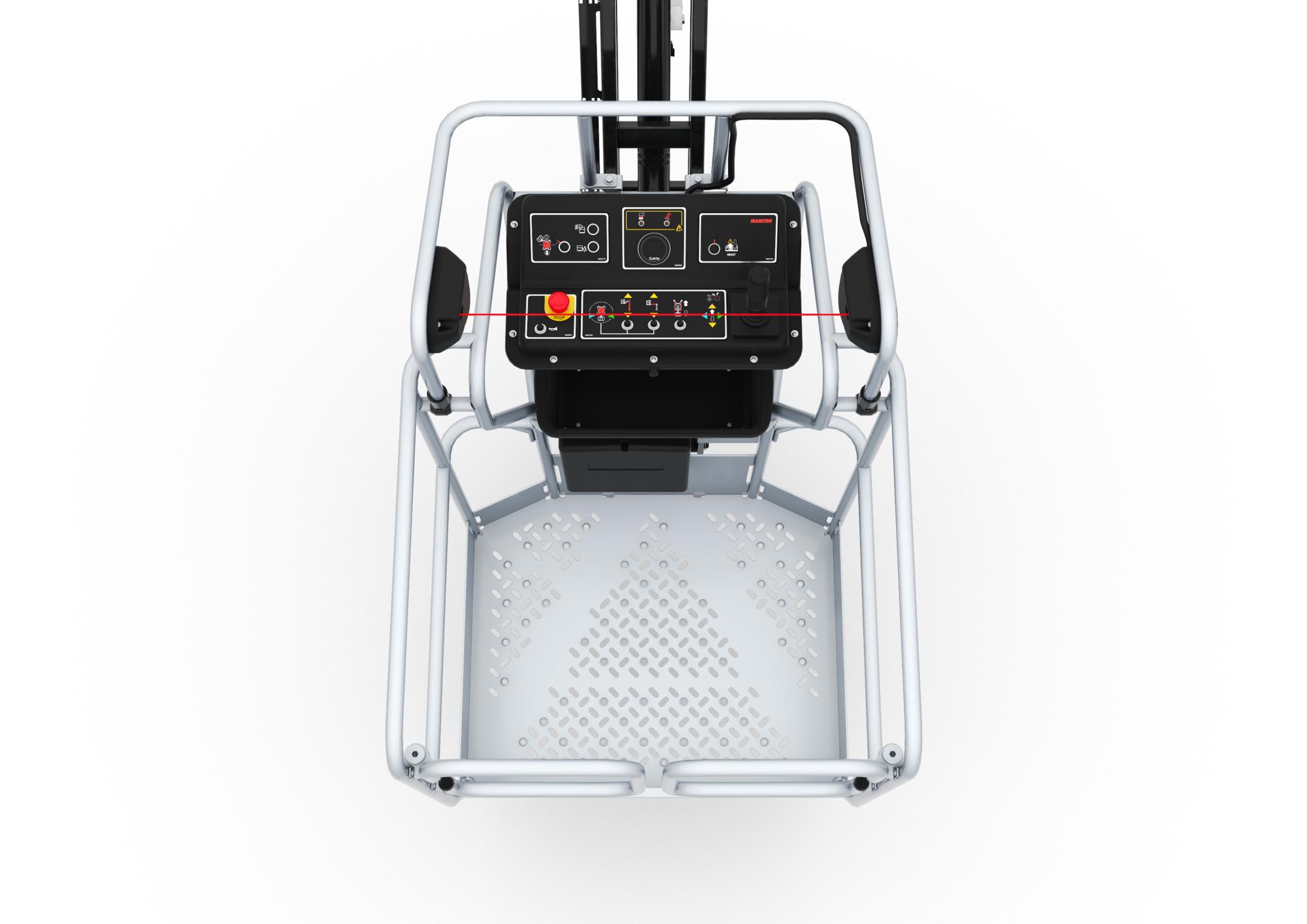 Met een platformcapaciteit van 200 kg kunnen twee personen (binnengebruik) of één persoon (buitengebruik) veilig op hoogte werken. Het platform van 1,19 × 0,93 meter ondersteunt comfortabel werken met gereedschap, licht materiaal of onderhoudsapparatuur. De machine heeft een maximale overhang van 6,50 meter, ideaal voor werkzaamheden boven obstakels of wanneer direct onder de werkplek geen ruimte is voor positionering.