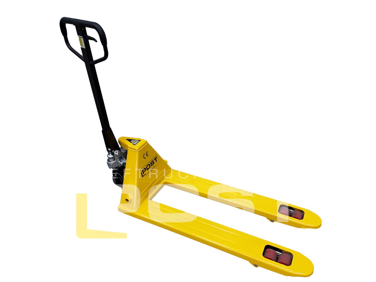 • Ergonomisch rubberen handvat • Rubberen wielen voor zachte ritten • Maar liefst 2500 kg hefgewicht • Degelijke hefpomp • Vorkmaat 1150 x450 of 1000x450