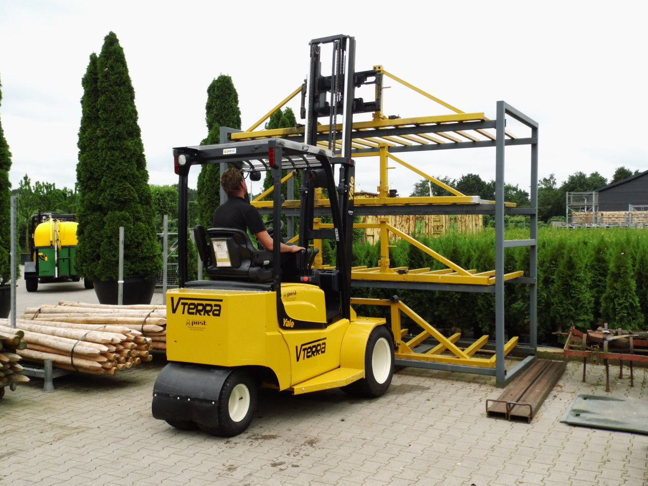 In de tuinbouw bleek behoefte aan maatwerkoplossingen ofwel special products, een heftruck met een lage bodemdruk, die bovendien geschikt is voor ruw terrein. Daarom heeft Heftruckcentrum Post in Emmeloord de Yale VTerra ontwikkeld. De basis is een elektrische heftruck van Yale. Door de dubbele volrubber banden wordt de bodemdruk lager en gelijkmatiger, en rijd je comfortabeler over ruw terrein. Dankzij de dubbele driewiel‑uitvoering is de VTerra bovendien zeer wendbaar. Daarnaast is deze heftruck snel en zuinig. Na je werkzaamheden laad je de machine eenvoudig op door hem aan te sluiten op het elektriciteitsnetwerk. Doordat de VTerra volledig elektrisch is, stoot de heftruck geen uitlaatgassen uit en werkt hij geruisloos.