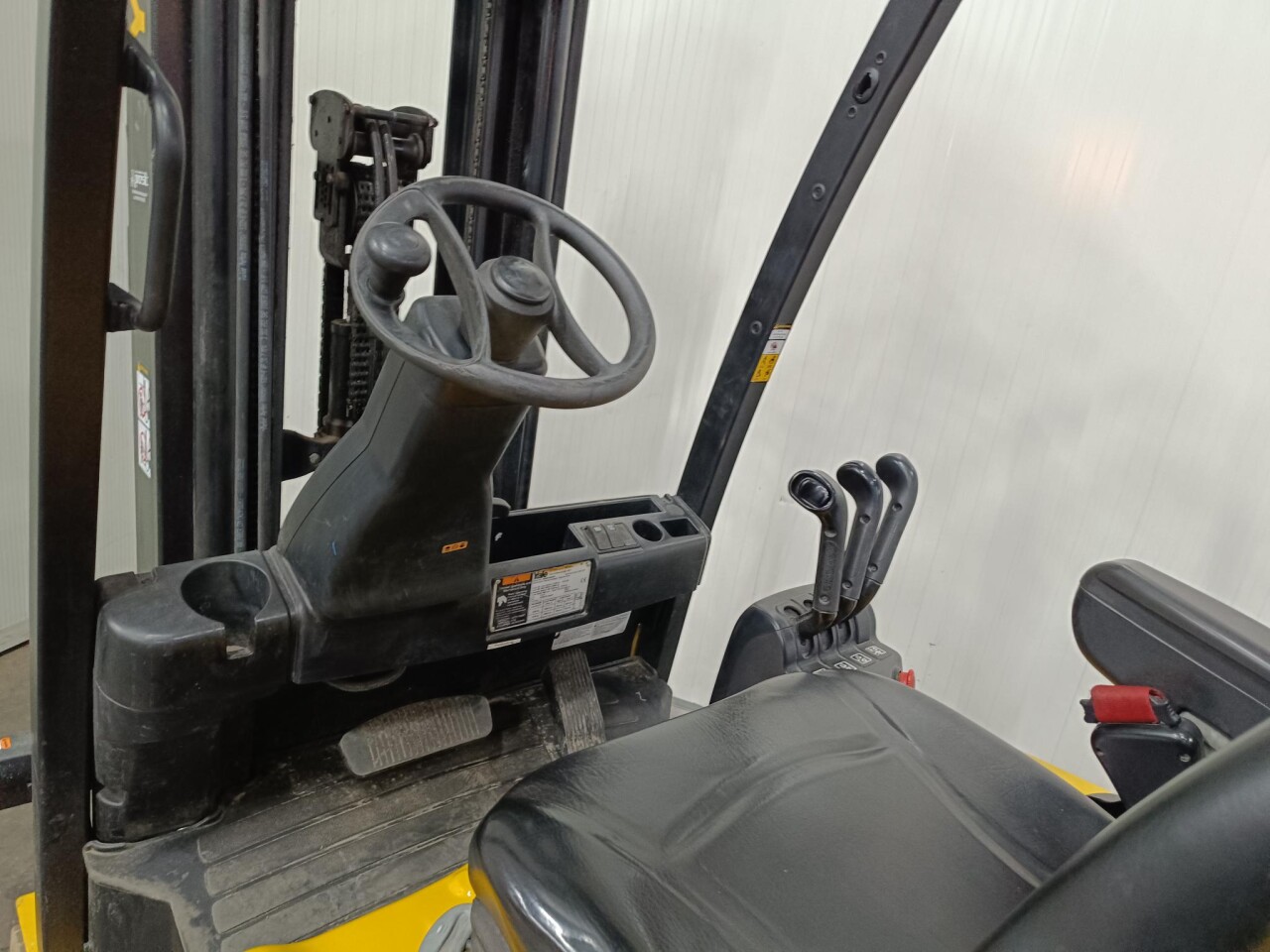De Yale ERC30AGF biedt ook een comfortabele werkplek voor de bestuurder. De cabine is ontworpen met ergonomie in gedachten en de truck is voorzien van duurzame componenten zoals stevige assen, solide rubberbanden (V 2x/2) en betrouwbare elektrische systemen. Dit draagt bij aan lage onderhoudskosten en hoge inzetbaarheid.