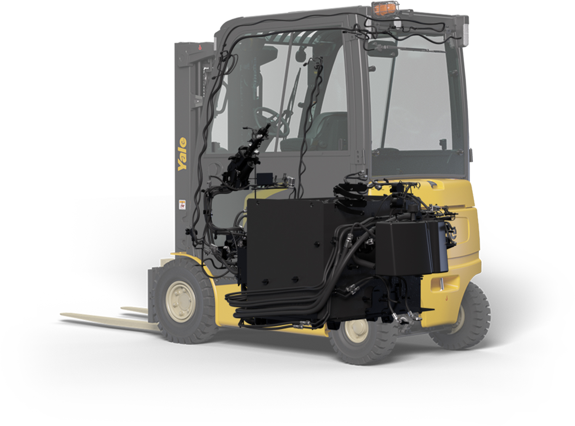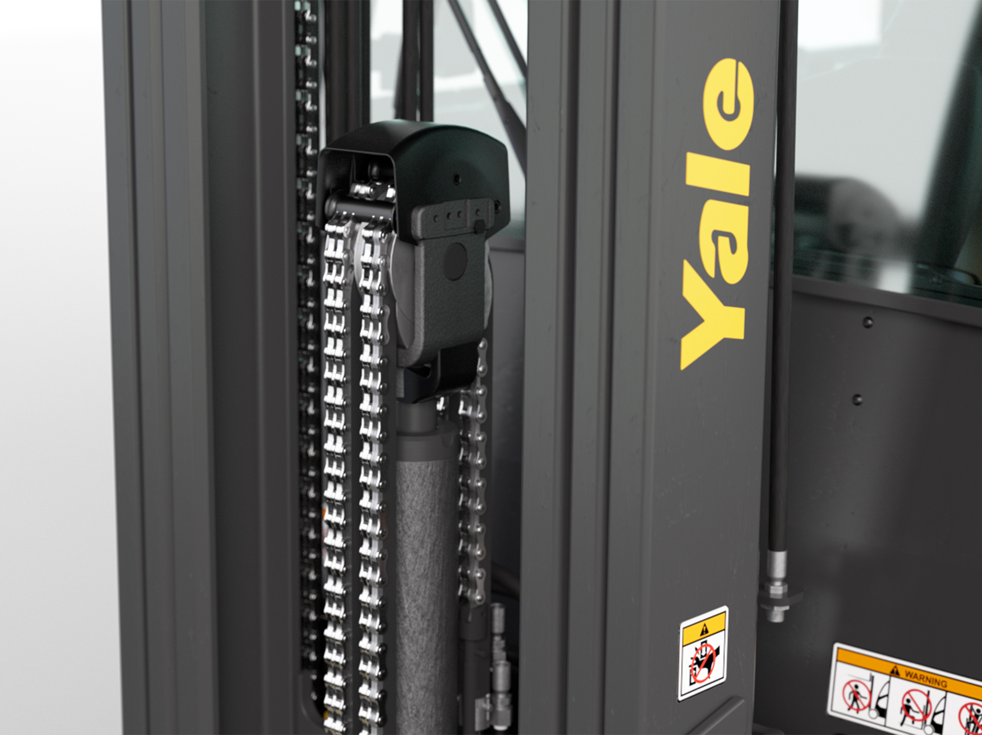 Het optionele DSS‑systeem bewaakt de stabiliteit continu en grijpt automatisch in wanneer de heftruck buiten veilige werkparameters komt. Het systeem geeft visuele en audio‑signalen en beperkt bijvoorbeeld snelheid of hefhoogte wanneer nodig — precies zoals Yale dit beschrijft in zijn Series N‑documentatie.