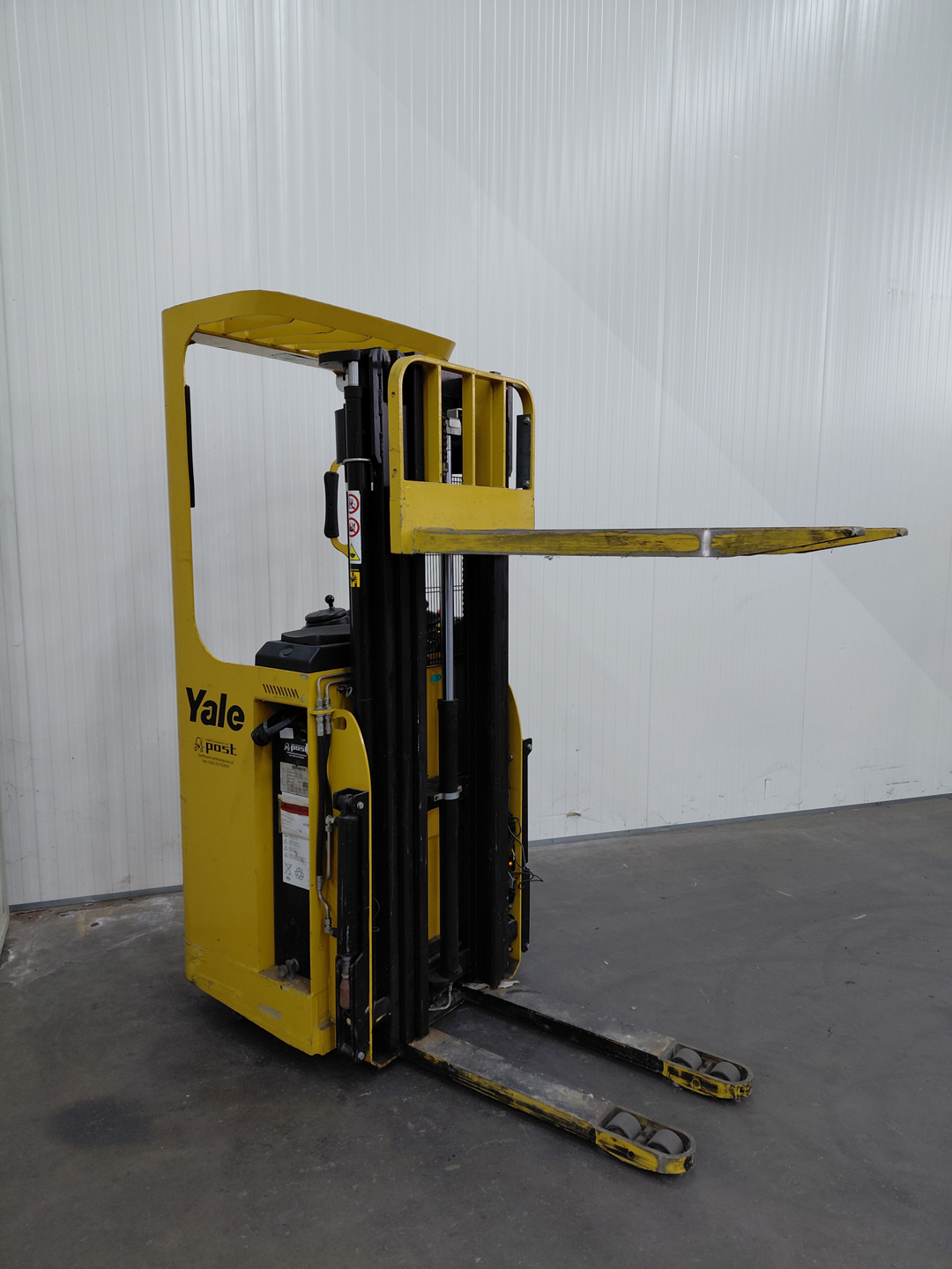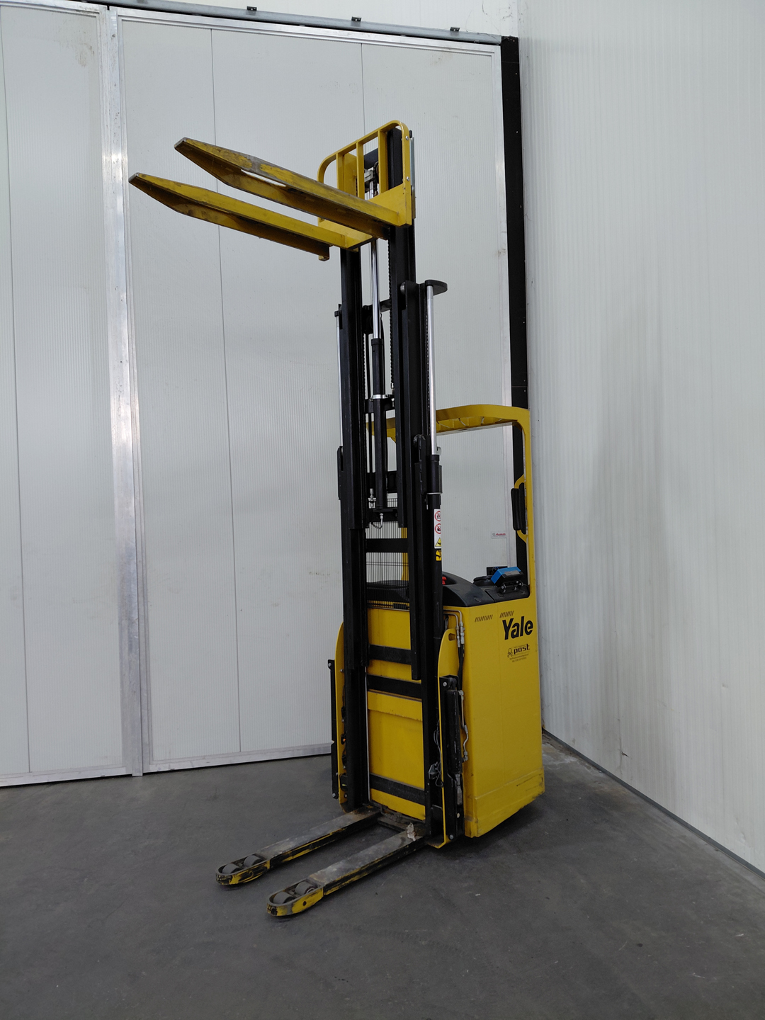 De Yale SMS15S is een krachtige en betrouwbare elektrische sta-in stapelaar die ontwikkeld is voor intensief magazijngebruik. Met een hefvermogen van 1.500 kg en een indrukwekkende hefhoogte van 4.800 mm is deze stapelaar ideaal voor het plaatsen van pallets op hoogbouwstellingen en voor efficiënt intern transport in smalle gangen. Dankzij de robuuste mastconstructie en de stabiele rij‑eigenschappen levert de SMS15S uitstekende prestaties, zelfs bij maximale hefhoogte. De ergonomische disselkop biedt de bestuurder optimale controle over rijden, heffen en dalen, terwijl de compacte bouw zorgt voor perfecte manoeuvreerbaarheid in krappe ruimtes.